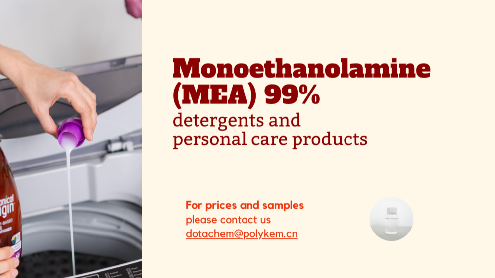 ICuir isteach ar, comhlíonann an monoethanolamine ardcháilíochta 99% a chuirimid ar fáil riachtanais dhiana na dtionscal glantach agus cúraim phearsanta. Le haghaidh tuilleadh eolais faoinár dtáirgí MEA agus a gcuid sonraíochtaí, cliceáil le do thoilan áit seoChun cuairt a thabhairt ar an leathanach táirge. Má tá aon cheist agat, má tá samplaí uait nó más mian leat do chuid riachtanas sonrach a phlé, déan teagmháil linn ag dotAchem@polykem.cn. Tá ár bhfoireann saineolaithe réidh i gcónaí chun cabhrú leat agus na réitigh is fearr a sholáthar do do riachtanais ghnó.
